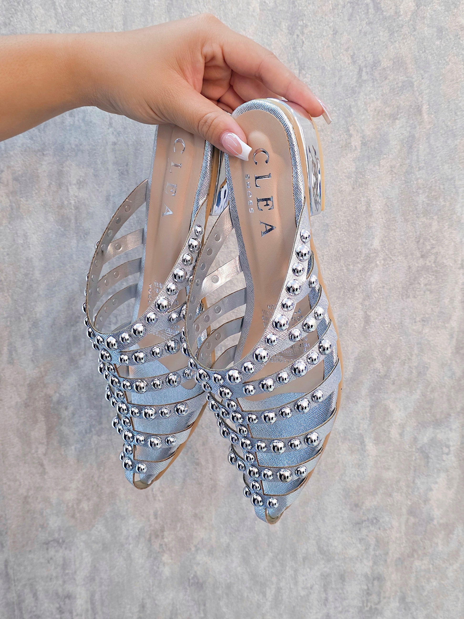 Baletas de punta estilizada al frente, diseñadas para combinar estilo y actitud. Su silueta afilada aporta un toque elegante y moderno, ideal para looks tanto formales como casuales. Cuentan con correas decorativas cruzadas sobre el empeine, las cuales están adornadas con tachuelas metálicas que aportan un aire rebelde y sofisticado al mismo tiempo.