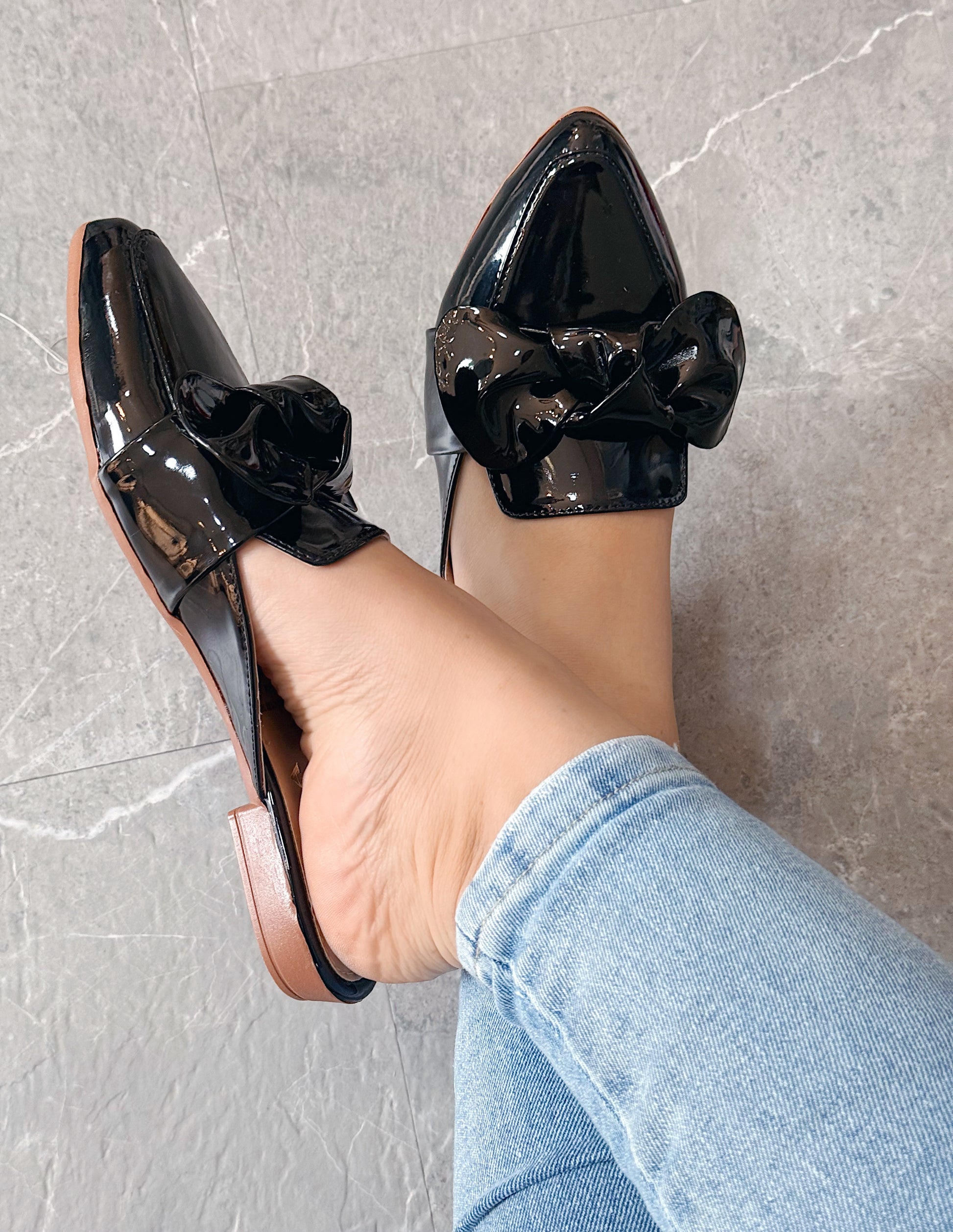 Elegancia y comodidad se fusionan en estas sofisticadas baletas en charol diseñadas para realzar cualquier look con un toque de estilo clásico, su acabado brillante aporta un aire refinado, mientras que la punta al frente estiliza el pie con delicadeza.